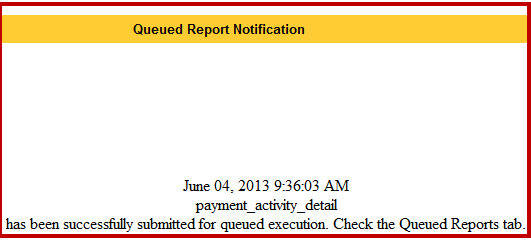 In each of these scenarios, the message below was displayed, indicating the report was successfully queued.