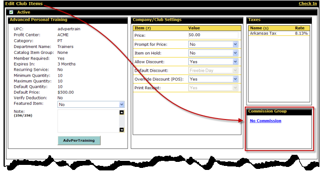 If the commission group is not fixed on the catalog item, you can attach the commission group to the club item. Otherwise, the commission group details are read only.
