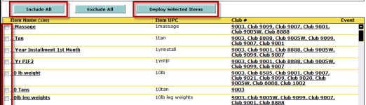 - Check the box next to the names of the items you want to deploy or click Include All to select all items in the list.