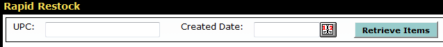 - Enter either the item UPC in the UPC field or the date the item was created in the Created Date field and click Retrieve Items.
