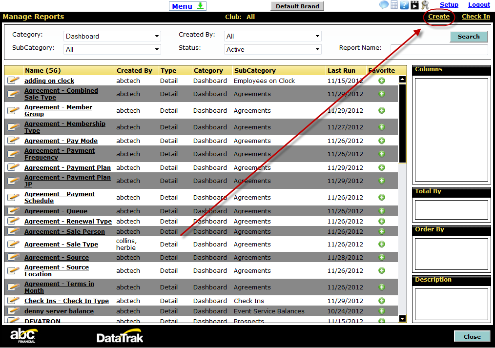 - Open the Main Menu in DataTrak and select Manage in the Reports submenu.