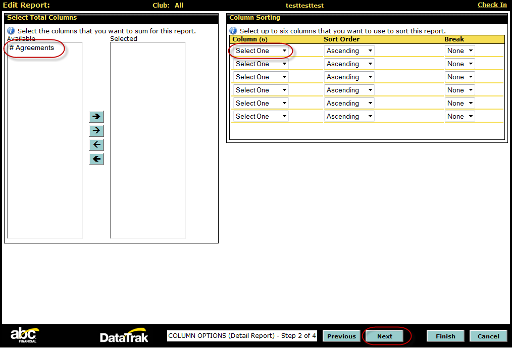 - Select Club Nbr as the Column option.